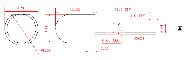 Tension directe | VF | - | 3.0 | 3.6 | V | SI=20mA |