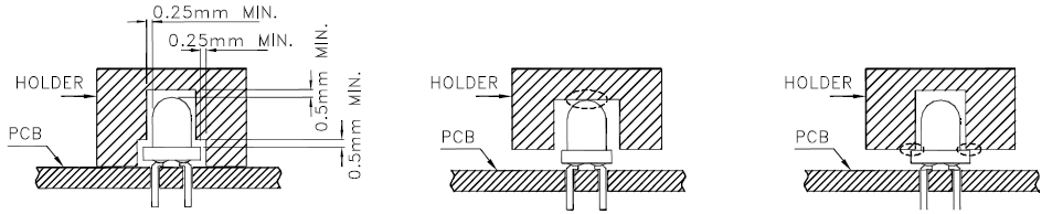 6. Pendant le soudage, les couvercles et les supports des composants doivent laisser un espace libre pour éviter d'exercer une contrainte dommageable sur la LED pendant le soudage.
